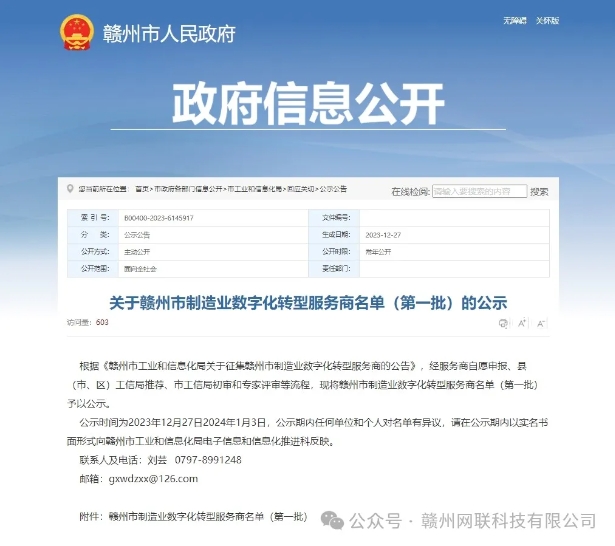 11喜報(bào)!網(wǎng)聯(lián)科技成功入選!贛州市制造業(yè)數(shù)字化轉(zhuǎn)型服務(wù)商名單(第一批)!